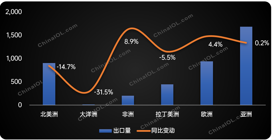 從區域市場(chǎng)來(lái)看,據產(chǎn)業(yè)在線(xiàn)數據顯示,2022上半年,歐洲、亞洲和非洲均實(shí)現了增長(cháng),其余洲別呈現下降趨勢,其中大洋洲降幅最大,同比下降達到31.5%,北美洲緊隨其后,下滑幅度為14.7%。